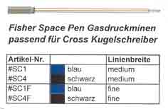 Gasdruckminen für alle FISHER Space Pen Kugelschreiber